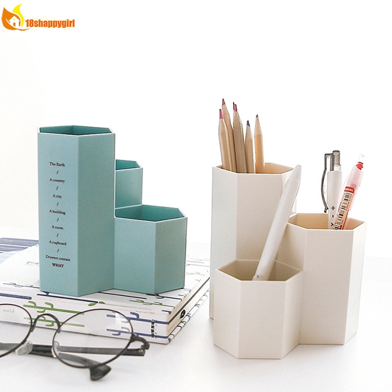 Pen Holder Three Lattices Pencil Stand Storage Box Home Office Desk Organizer